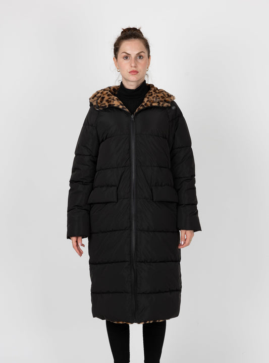 DOUDOUNE LONGUE RÉVERSIBLE EN IMPRIMÉ LÉOPARD