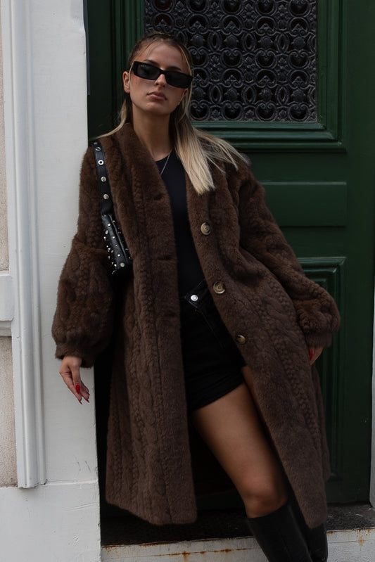 MANTEAU LONG REVERSIBLE FAUSSE FOURRURE ET SIMILICUIR