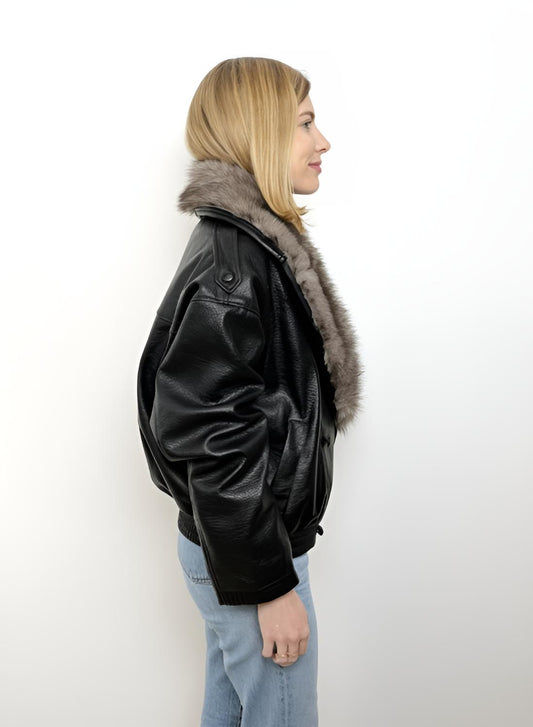BLOUSON SIMILICUIR COL EN FAUSSE FOURRURE