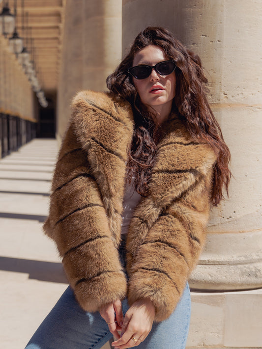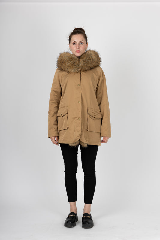 COAT WITH FAUX FUR INTERIOR AND COLLAR