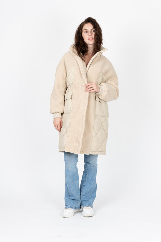 LONG AVIATOR COAT WITH FAUX FUR INSIDE