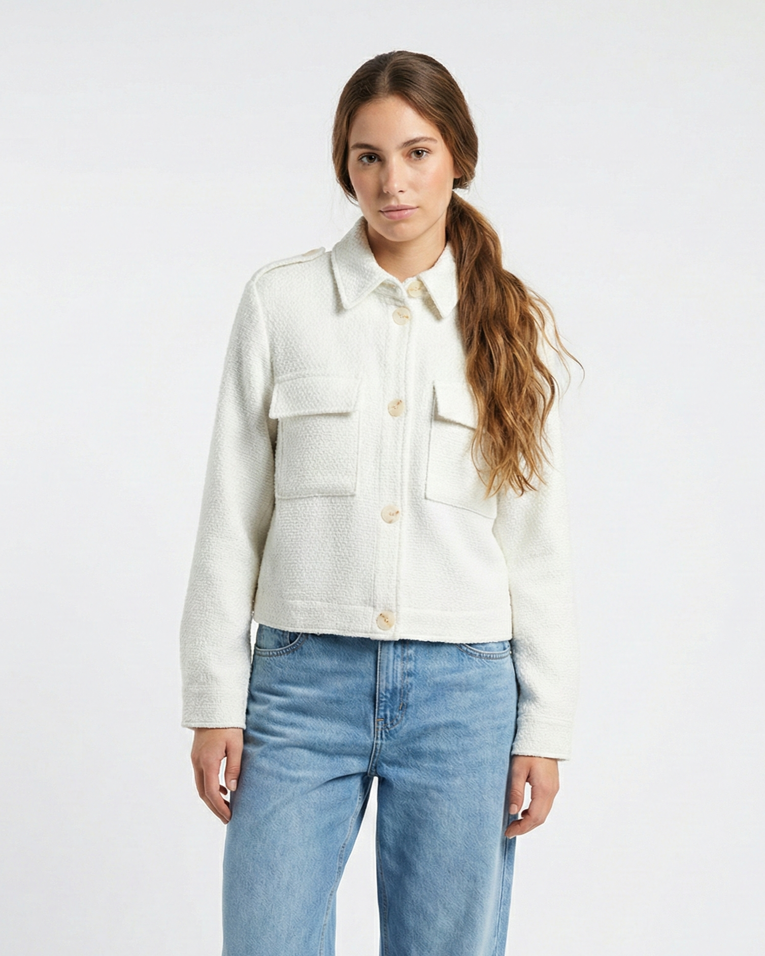 - Button closure at the front