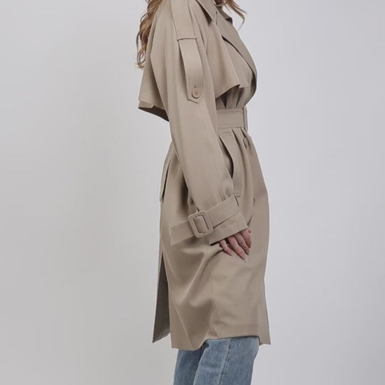 This oversized trench coat stands out thanks to its fluid fabric that moves with you. True to the roots of this iconic piece, it features meticulous details: epaulettes, protective storm flaps, and a buckled belt to sculpt a tailored silhouette. Raglan sleeves add a touch of modernity for unparalleled everyday comfort.