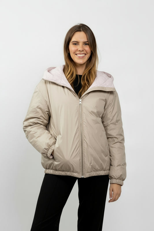 CHAQUETA IMPERMEABLE REVERSIBLE CON CAPUCHA