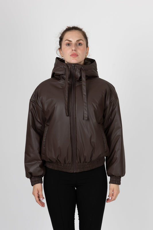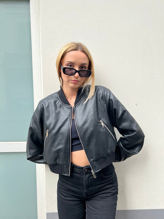 CHAQUETA BOMBER CORTA DE CUERO SINTÉTICO
