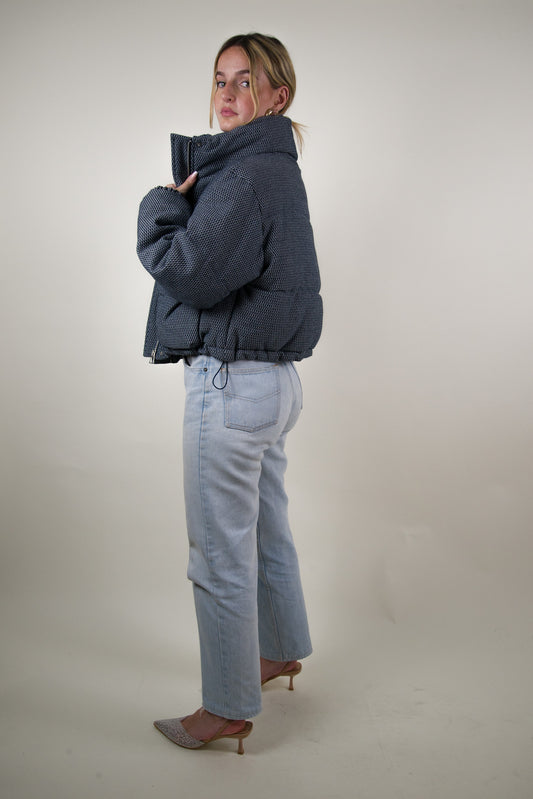 CHAQUETA DE PLUMÓN PREMIUM EN TEJIDO AZUL