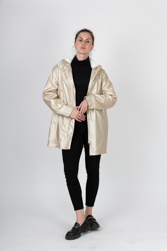PARKA IMPERMEABLE CON CAPUCHA DE PIEL SINTÉTICA
