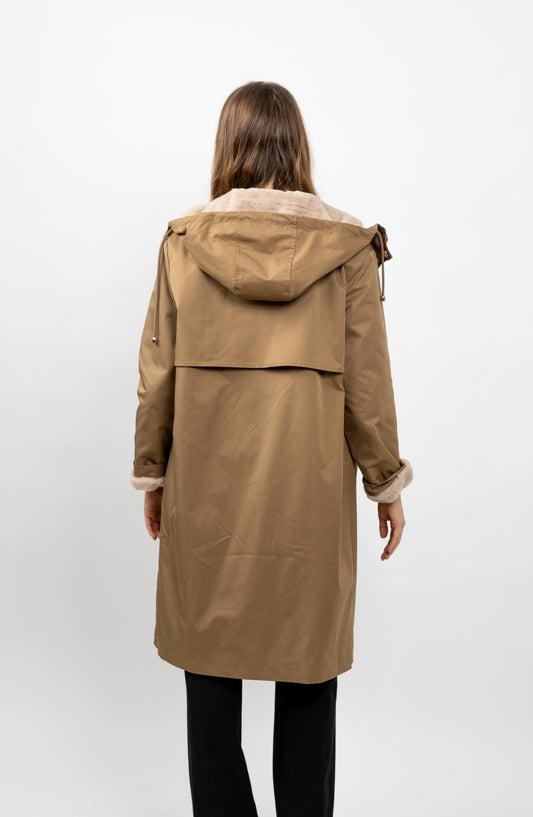 PARKA IMPERMEABLE CON CAPUCHA DE PIEL SINTÉTICA