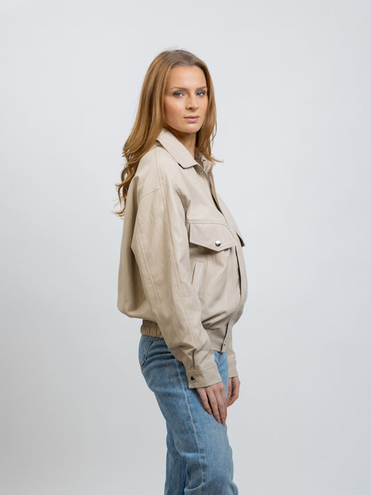 CHAQUETA BOMBER CORTA DE CUERO SINTÉTICO