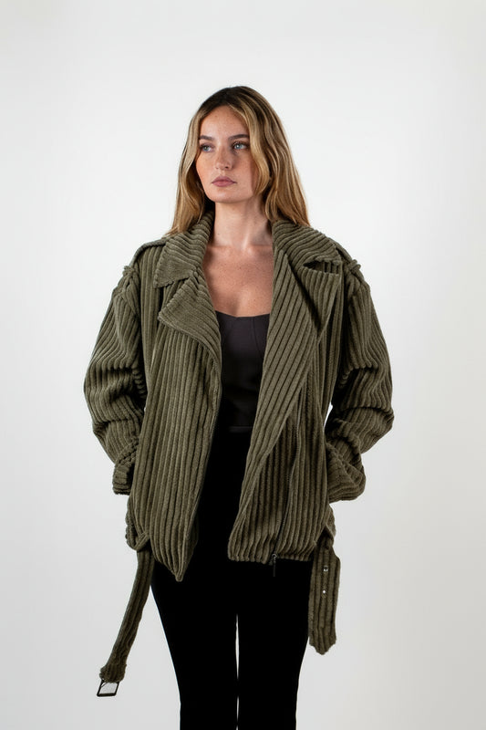 CHAQUETA DE CUERO SINTÉTICO CON CINTURÓN