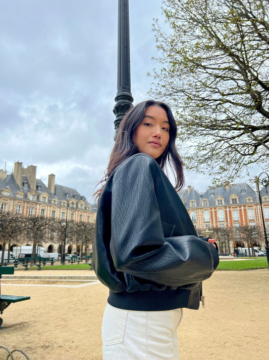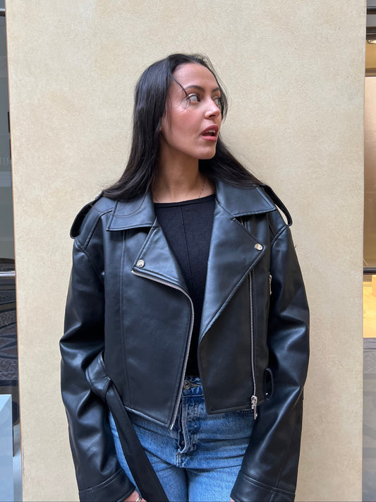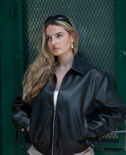 CHAQUETA BOMBER DE PIEL SINTÉTICA DE GRAN TAMAÑO