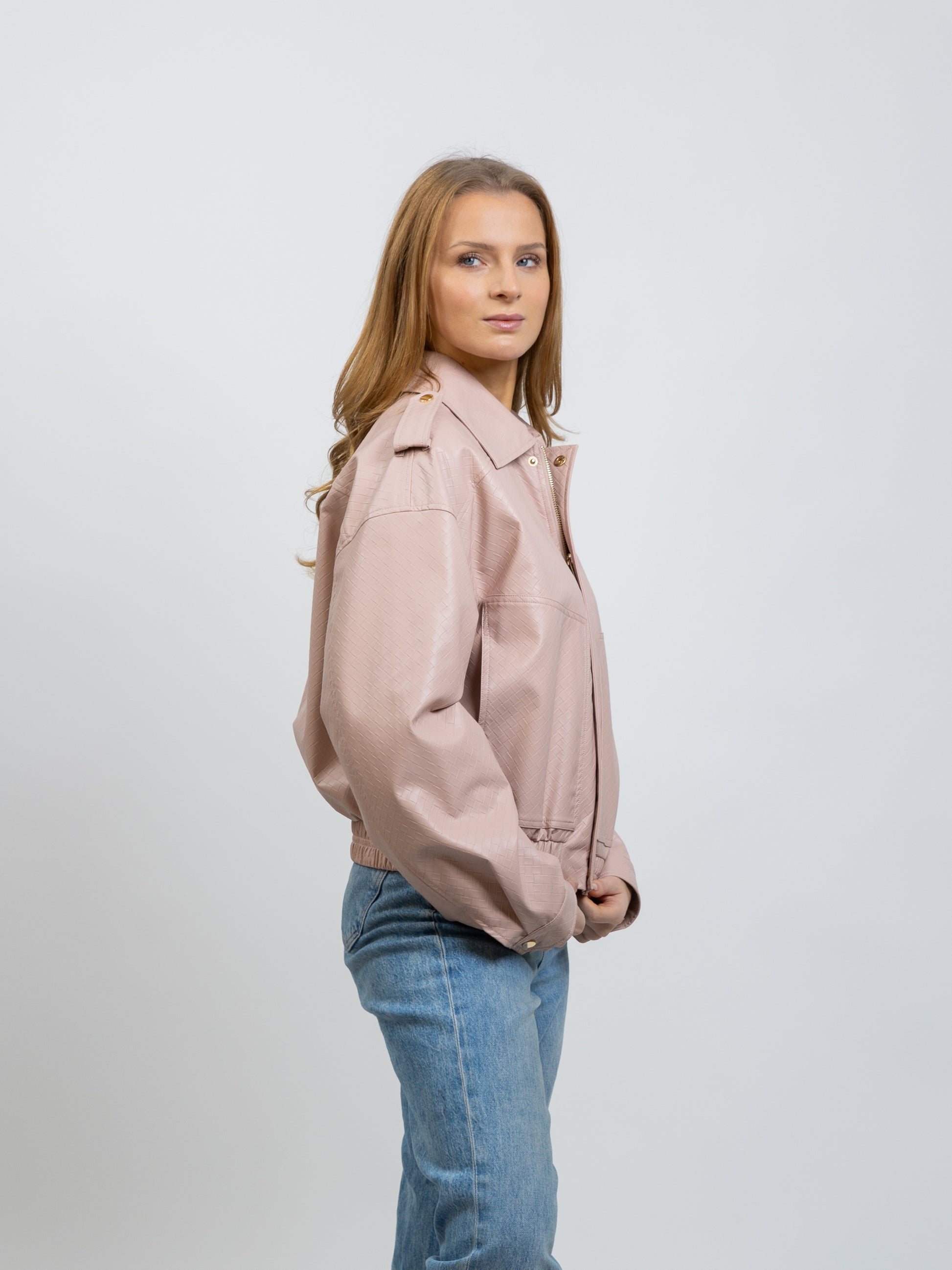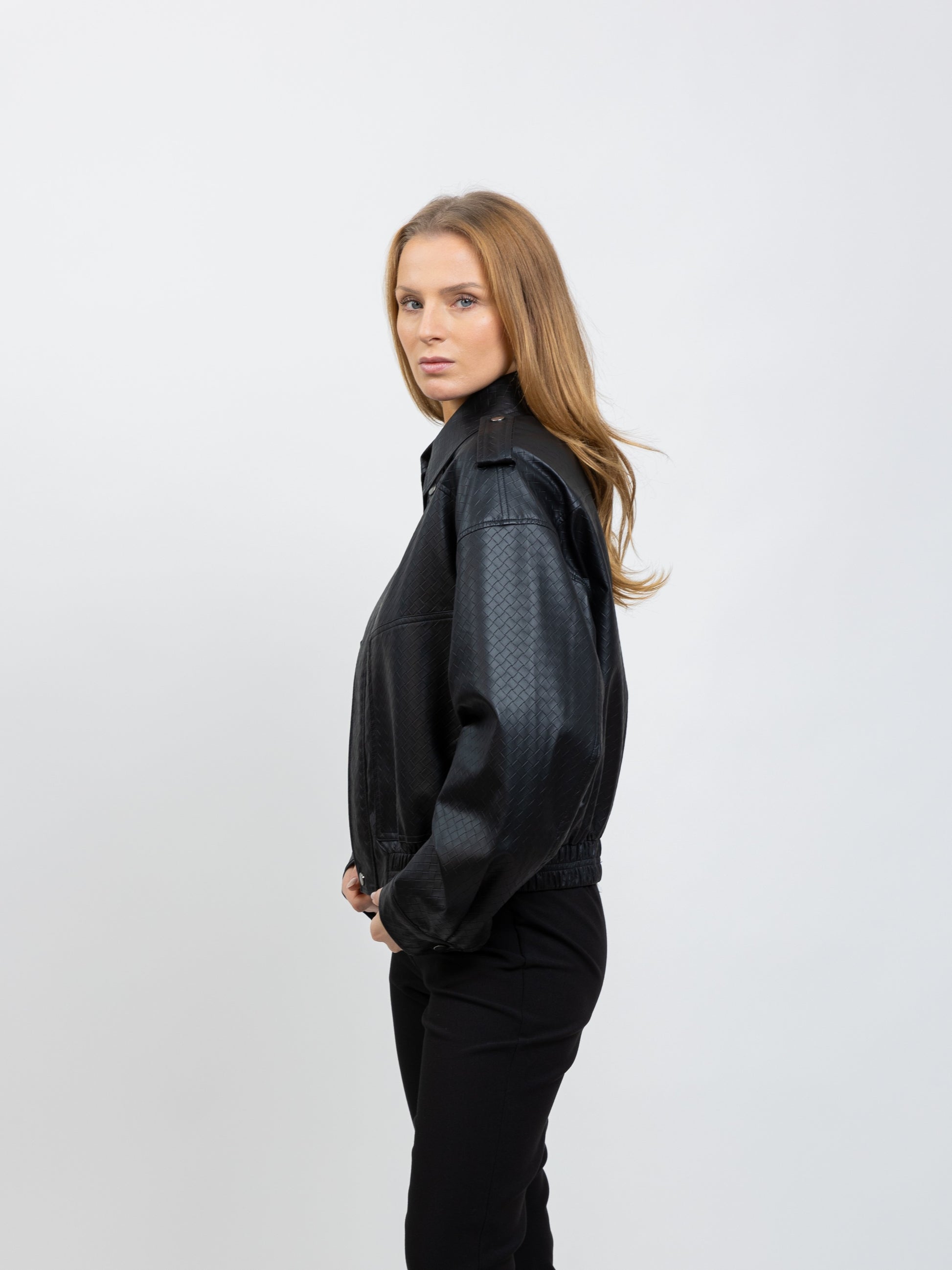 CHAQUETA DE CUERO SINTÉTICO CON ESTAMPADO TRENZADO
