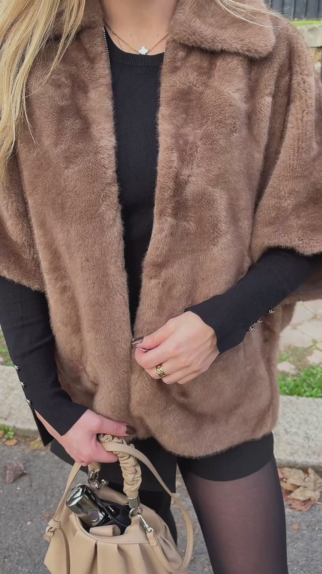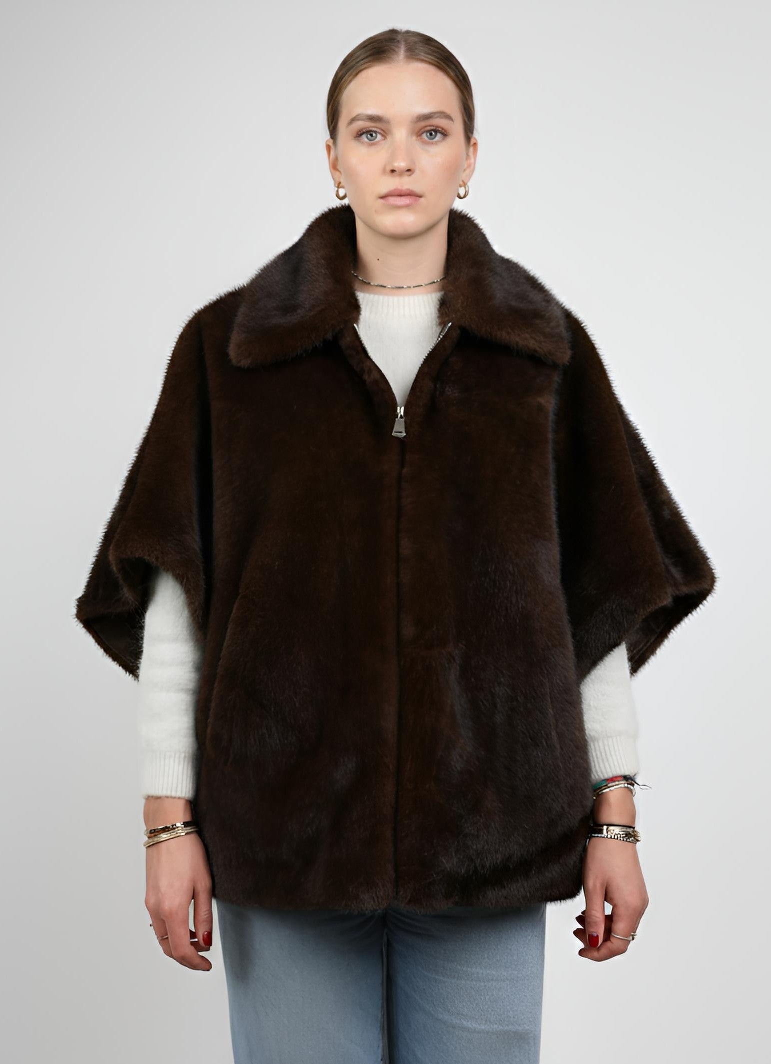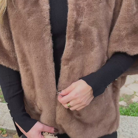 Esta capa de piel sintética destaca por su sutil efecto bicolor y su cierre de cremallera, que le confiere un aspecto moderno. El interior de ante sintético ofrece una sensación suave y cómoda. El ribete de piel le da un toque de lujo a esta prenda imprescindible. Fácil de llevar, es ideal para cualquier ocasión.