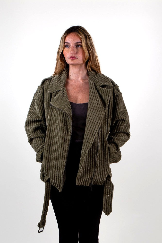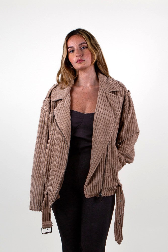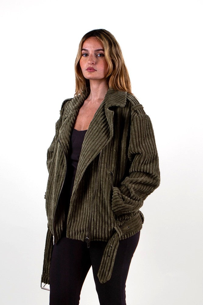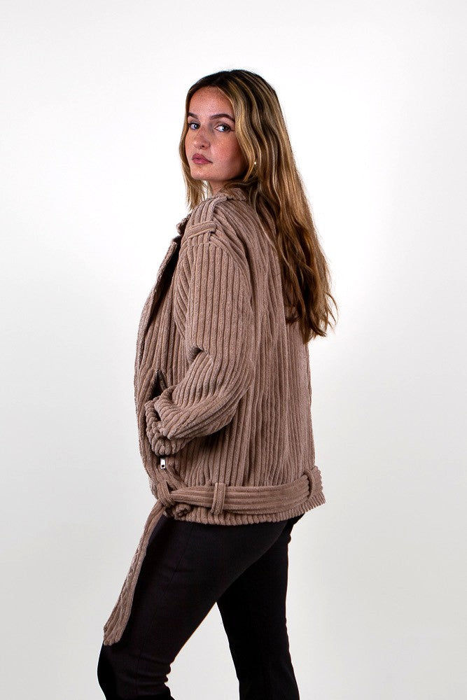Chaqueta de pana con cremallera y cinturón. ¡Esta chaqueta es ultramoderna y te mantendrá abrigada y con estilo esta temporada!