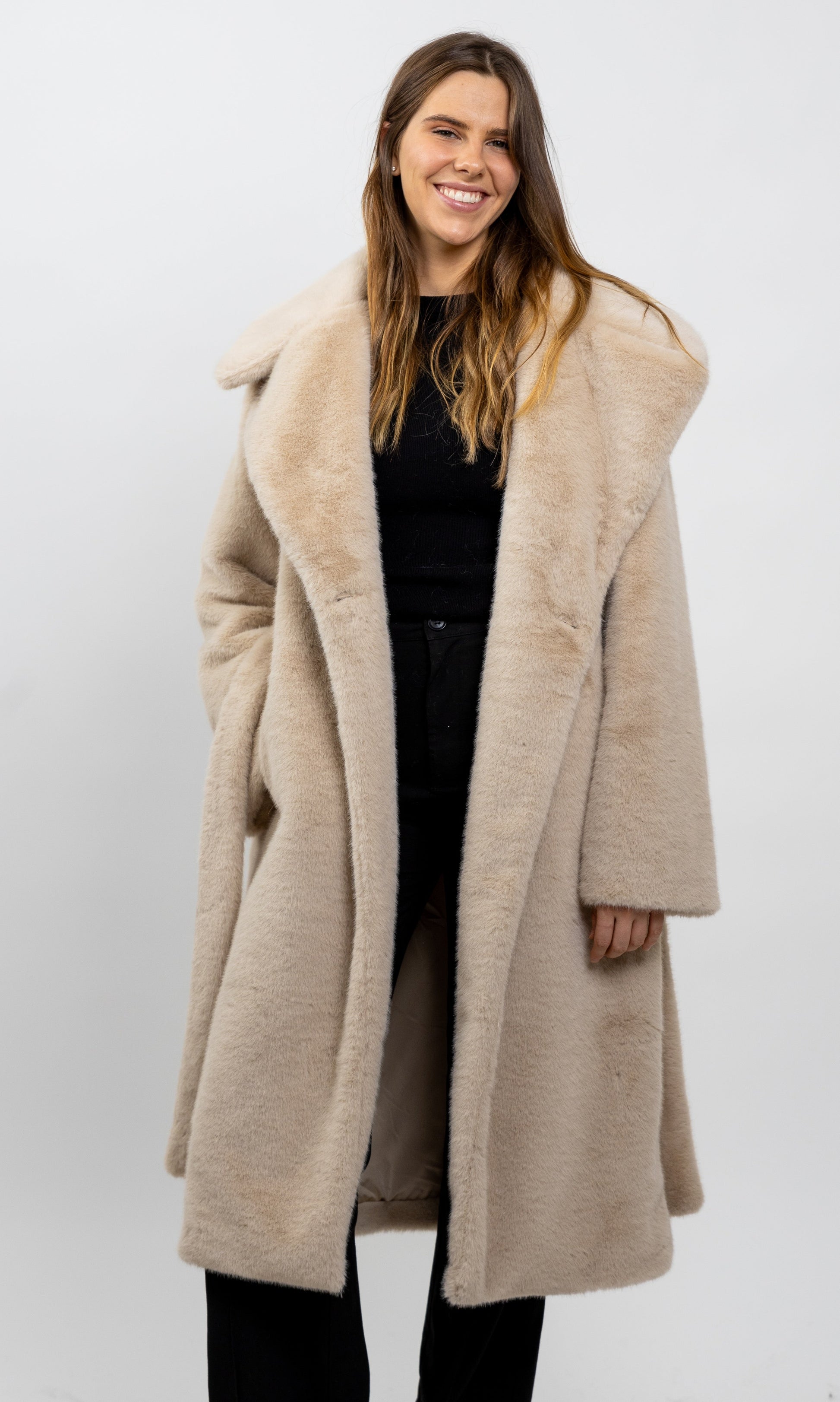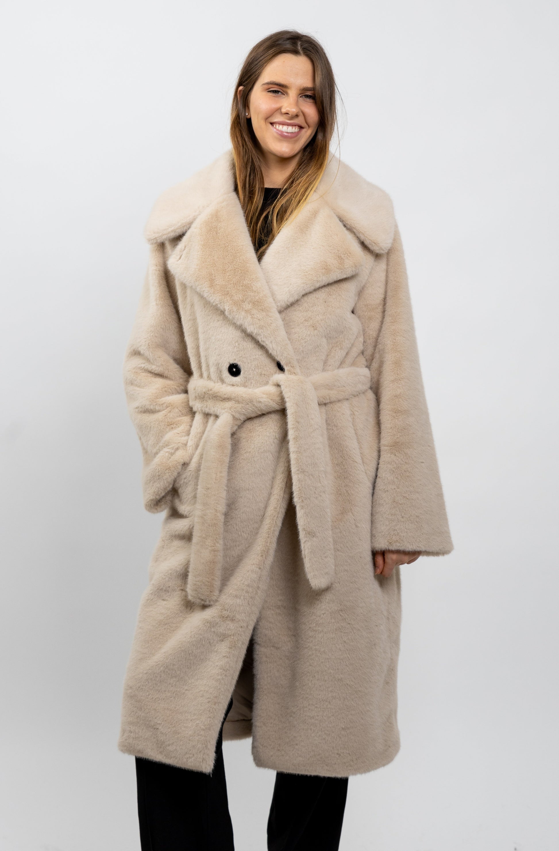 MANTEAU LONG EN FAUSSE FOURRURE A CEINTURE