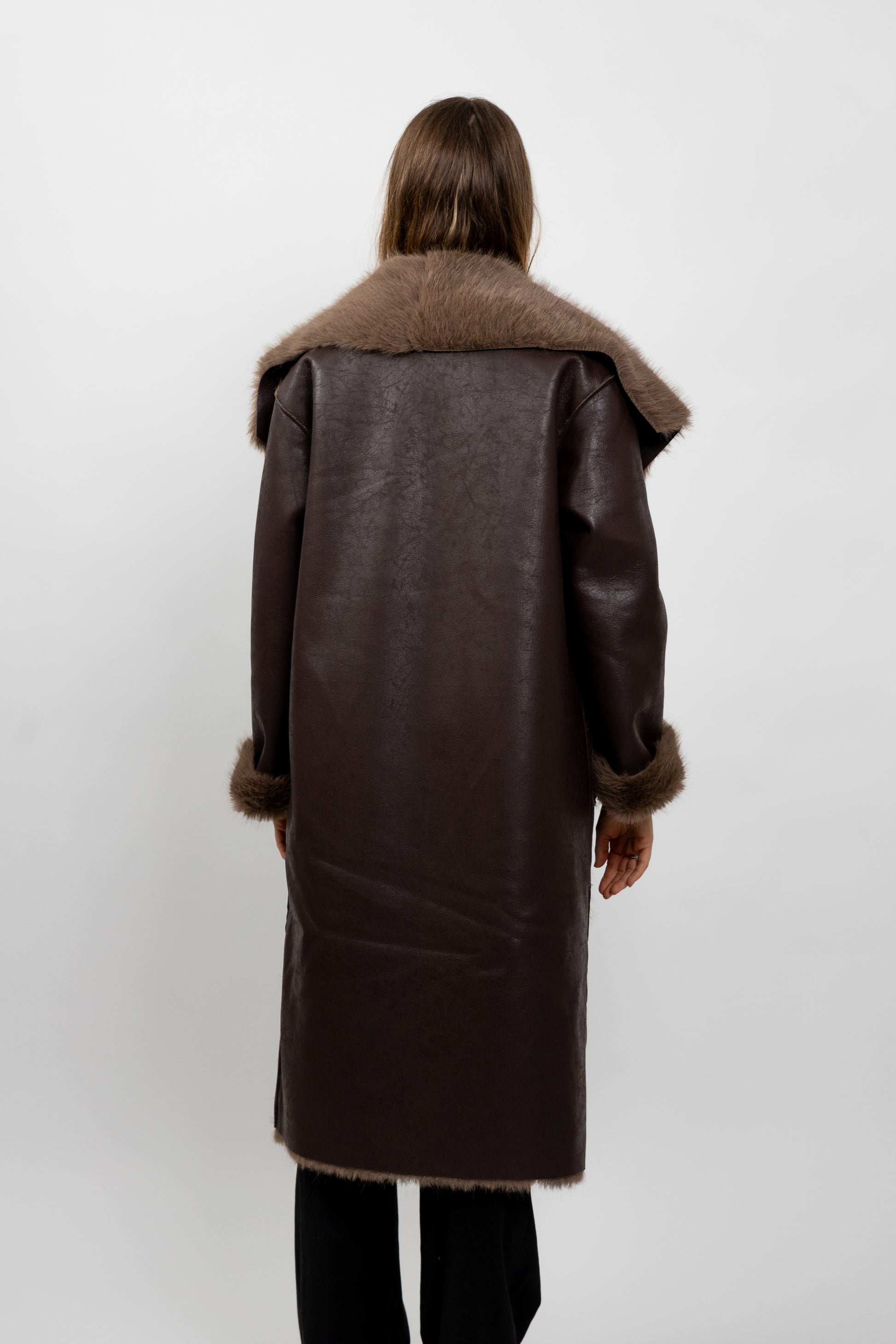 MANTEAU LONG REVERSIBLE FAUSSE FOURRURE / SIMILICUIR
