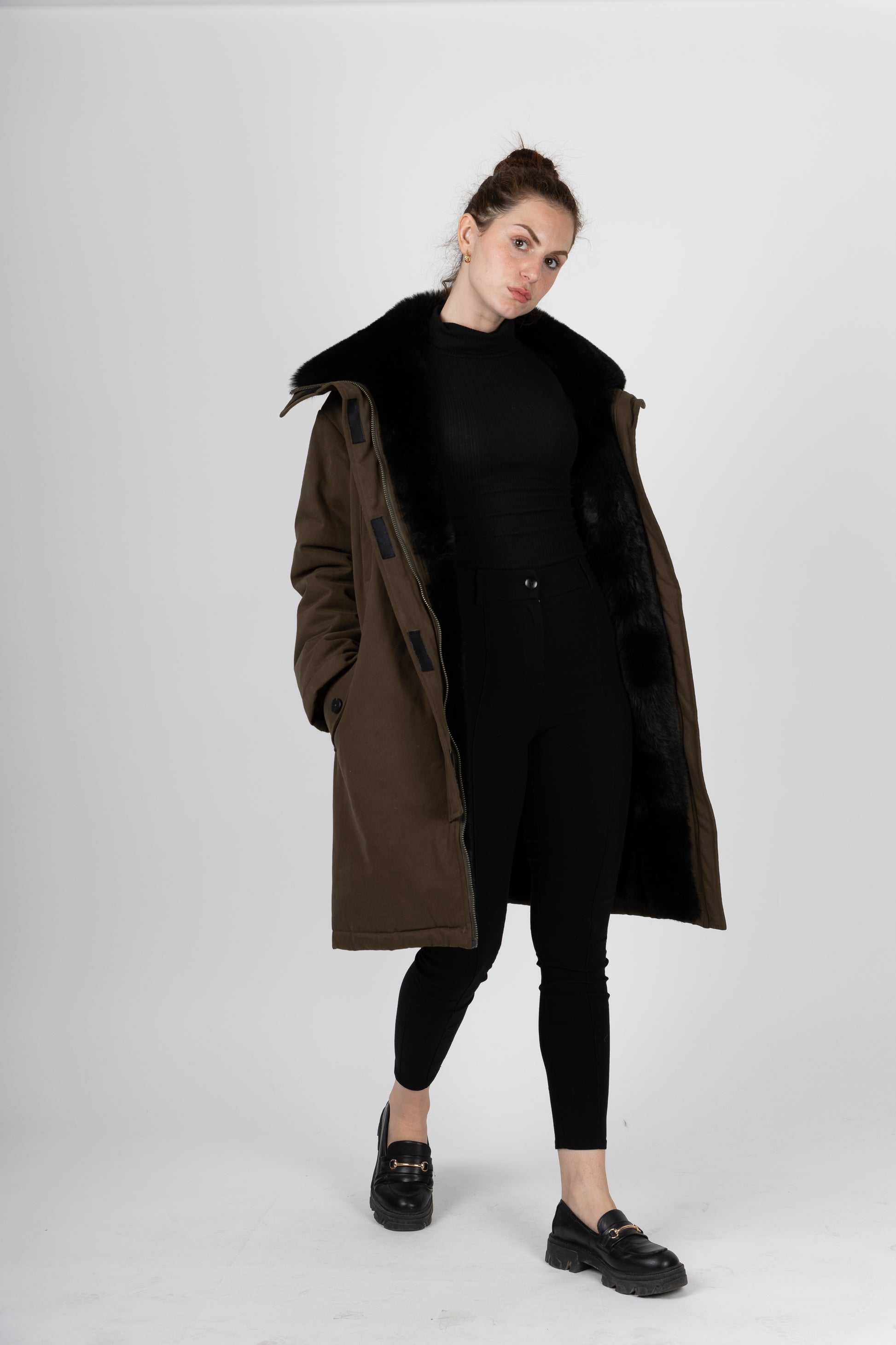 PARKA LONGUE AVEC INTÉRIEUR ET COL FAUSSE FOURRURE