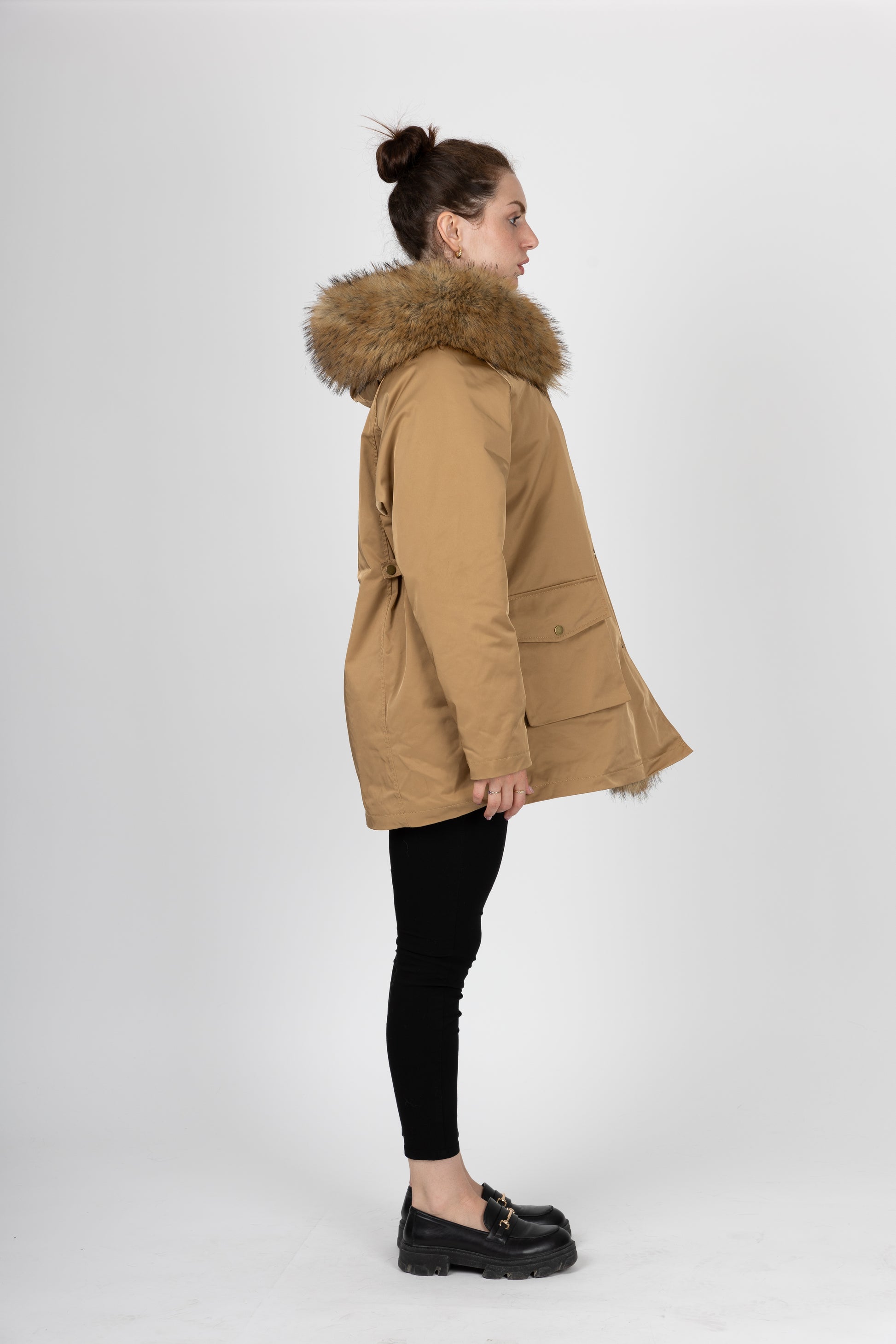ABRIGO CON INTERIOR Y CUELLO DE PIEL SINTÉTICA