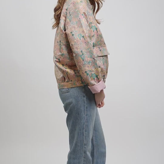 CHAQUETA CON ESTAMPADO FLORAL METÁLICO