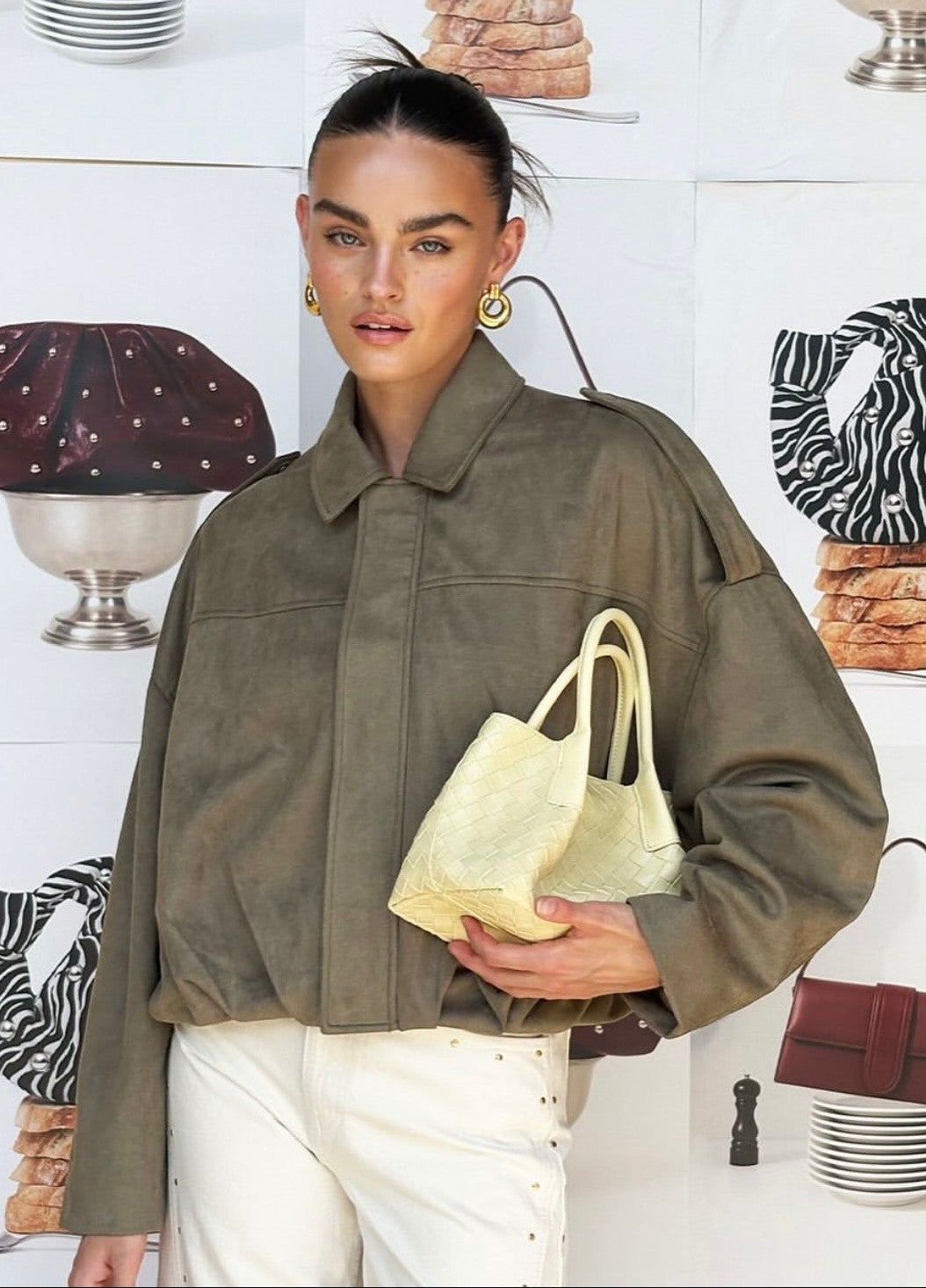 Rehaussez votre look avec ce blouson effet daim à la coupe unique. Son style "boule" est créé par un élastique à la base, pour une silhouette résolument tendance. Les pattes d'épaules soulignent la carrure, offrant un look à la fois casual et sophistiqué.