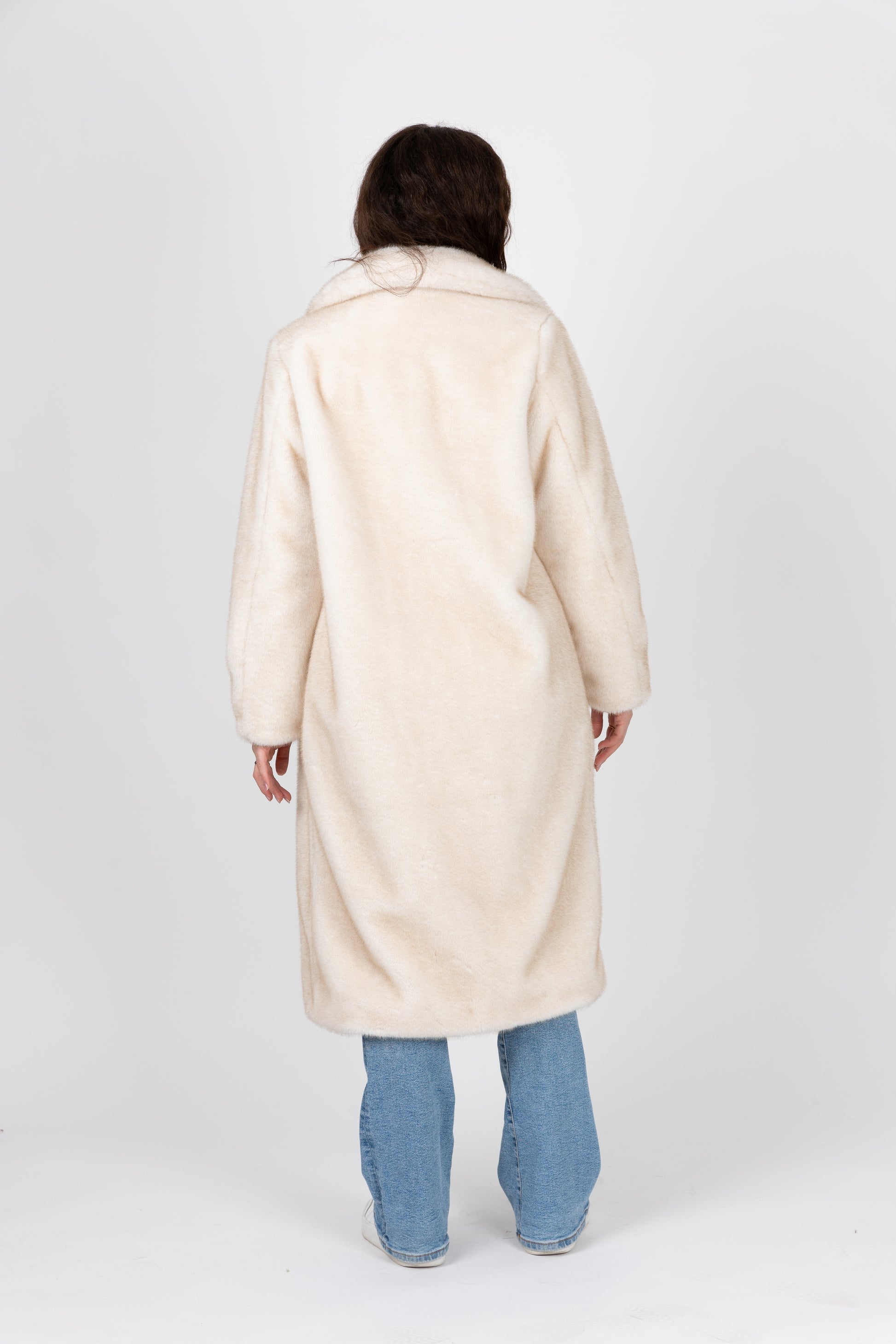 Adoptez l'élégance naturelle avec notre manteau long en fausse fourrure. Sa coupe droite intemporelle et son col à revers s'associent à un subtil effet bi-colore, offrant un rendu incroyablement authentique. Moderne et élégant, ce manteau est parfait pour rehausser vos tenues, aussi bien de jour pour une touche de chic décontracté, que de soir pour une allure sophistiquée.